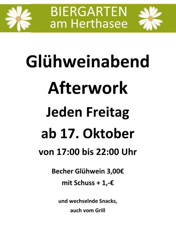 Der Glühwein-Afterwork Abend findet ab 17.10. jeden Freitag ab 17:00 Uhr statt.