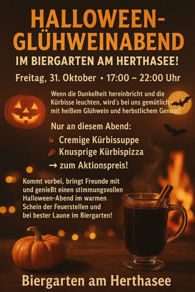 An einem kühlen und goldenen Oktoberabend veranstalten wir einen gemütlichen Glühwein-Afterwork Abend mit gutem vom Grill und leckerem Glühwein mit und ohne Schuß. Alle anderen Getränke gibt es natürlich auch. 😉