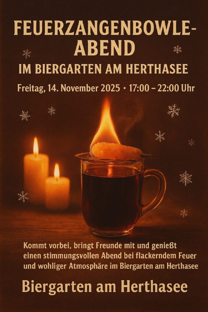 Am 14.11. findet ein Feuerzangenbowle Abend im Biergarten am Herthasee statt.